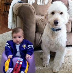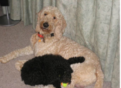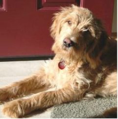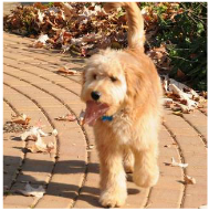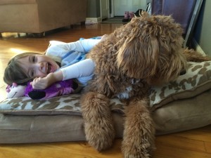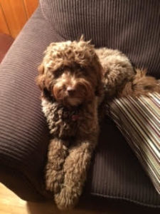I would highly recommend a doodle; they are very good natured and loving. I love it when Sam snuggles up to me to watch TV; though he is often just as happy flopping on the floor for a nap. Watching him run in the yard and chase birds is also a treat; with his tail waving above him is such a handsome site.