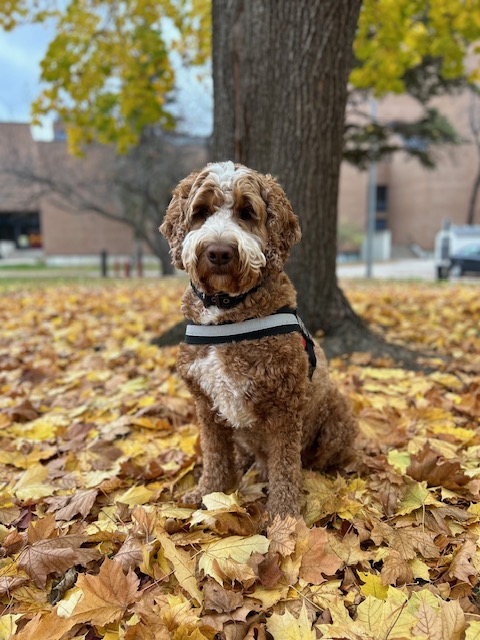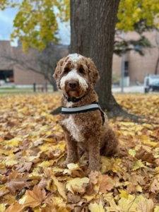 He is 4 years old already, will be 5 on January 1. He has brought SO MANY positive benefits to this campus over the years, I really can’t stress the amount of good he has done here. He does a ton of programming (Pet away your Stress), goes on mental health calls, and sits in on victim interviews. He helps kids with homesickness and missing their pets at home. He also does a lot of admissions events where we are trying to recruit kids to come here.